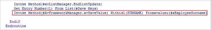 Invoke Method(#AvFrameworkManager.avSaveValue) Withid1(SURNAME) Fromavalueu(#xEmployeeSurname)