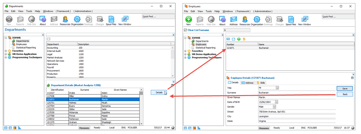 このチュートリアルでは、エンドユーザーが "部門" ビジネス・オブジェクトから "社員" ビジネス・オブジェクトに切り替えられるようにします。 また、仮想クリップボードを使って、切り替え履歴を保存して、ユーザーが切り替えを始めた元のオブジェクトに戻ることができるようにします。