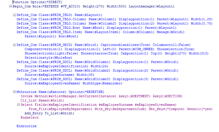 Select Fields(#xEmployeeIdentification #xEmployeeSurname #xEmployeeGivenNames) From_File(xEmployeeByDepartment) With_Key(#xDepartmentCode) Nbr_Keys(*Compute) Generic(*yes)