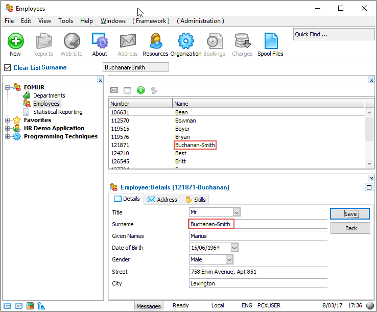 このチュートリアルでは、社員フィルターにイベント・ルーチンを追加します。これは、社員詳細が変更されたことを示す信号を聞き取り、インスタンスリストを更新します。