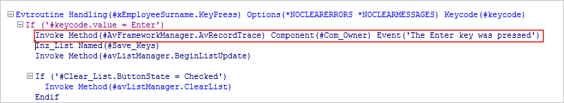 Invoke #AvFrameworkManager.AvRecordTrace Component(#Com_Owner) Event('The Enter key was pressed')