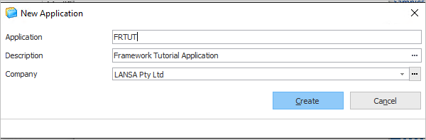 定義済みの会社が無い場合、会社プロンプトから会社ダイアログの作成ボタンを使って会社を作成します。 - 会社を選択したら、アプリケーションを作成します。
