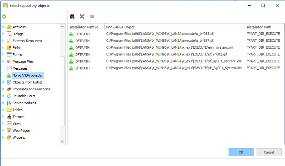 - 最後に、LANSA の Execute ディレクトリにある U_bif987.dll、u_bif985.dll を選択してください。