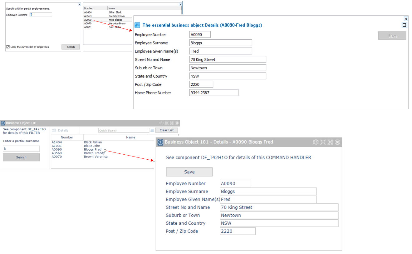 この場合、省略値のコマンド・ハンドラーは現在選択されている社員の詳細を表示します。