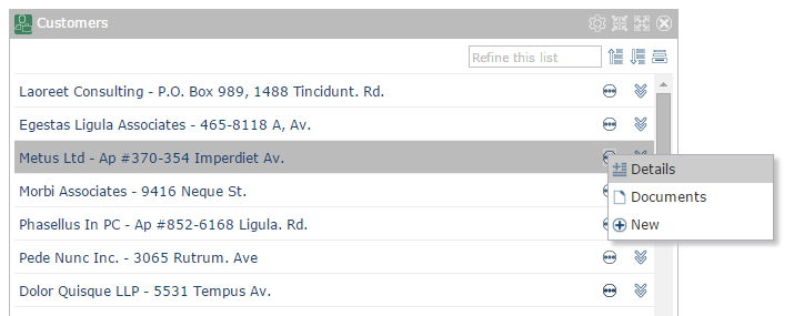 more アイコンをクリックすると、利用可能なコマンドのリストが表示されます。