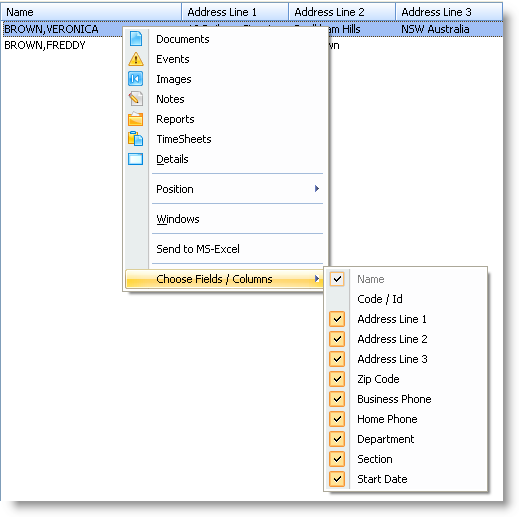 縦並びまたは横並びの子リストの列を選択する場合は、マウスを子リストの上に置いてからマウスを右クリックしてください。