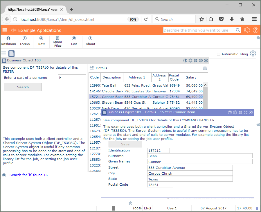 ビジネス・オブジェクト 103 の例は次のようなものです。