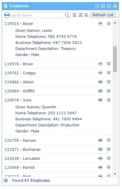 このスタイルは、水平方向のスペースを省いて、最も基本となる識別情報のみをグリッド・スタイルのリストに表示でき、必要に応じて各アイテムを展開して詳細を表示させることができるので便利です。