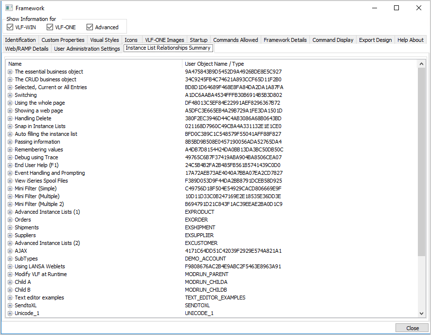 プロパティ・タブ・シート - インスタンスリストの関係について