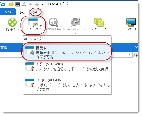 [ツール] タブに切り替え、[VL フレームワーク] ボタンをクリックします。
