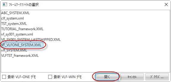 提供の VF_VLFONE_SYSTEM.XML を選択し、[開く] をクリックします。