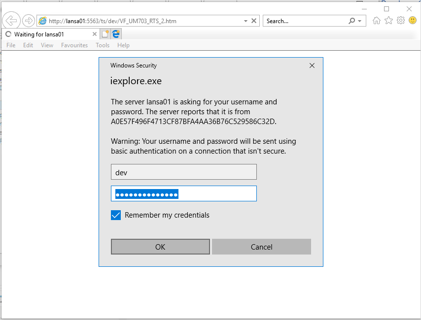 認証ダイアログでは、dev/dev を使用し、[OK] をクリックします。