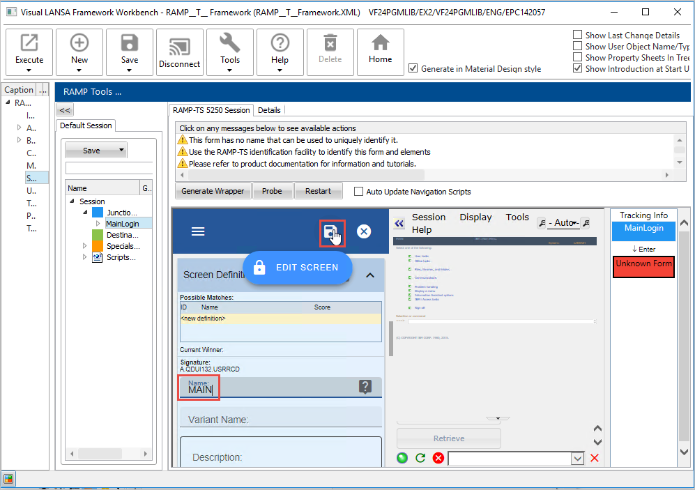 ただし、RAMP にとっては、この画面名は MAIN です。なぜなら、アクティブなジョブの処理の署名は IBM i メインメニューと同じだからです。