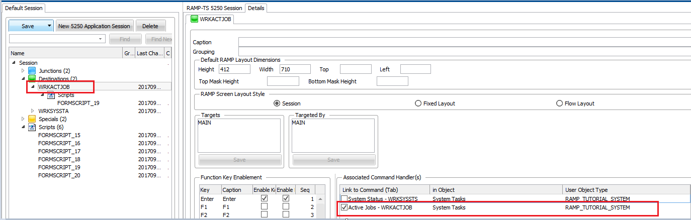ツリーでデスティネーション WRKACTJOB をクリックします。