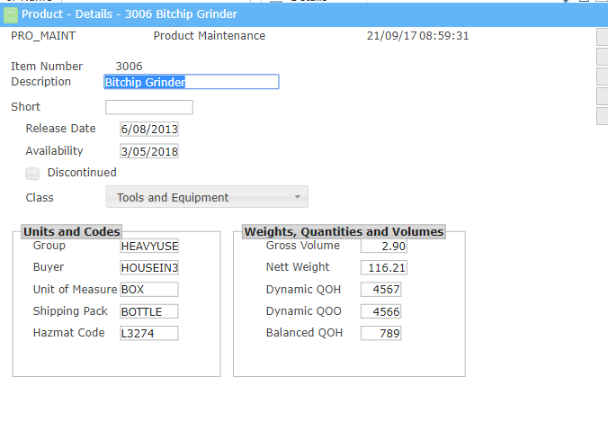 このチュートリアルでは、引き続き RAMP-ONE05: フィルターに値を追加 - 製品管理 の例を使用します。次の画面の数カ所に簡単な変更を加え、このような画面にします。ステップ 1. RAMP ツールを起動するステップ 2. 画面を編集するステップ 3. フィールドを再配置するステップ 4. グループ・ボックスを追加するステップ 5. 廃止フィールドをチェックボックスとしてビジュアライズするステップ 6. クラスをドロップダウンとしてビジュアライズするステップ 7. フィールドを再整列するステップ 8. Enter ボタンのみを有効にするステップ 9. 画面を保存して、ロック解除する