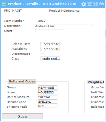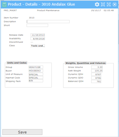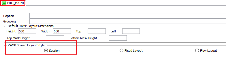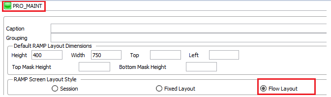 次の図では、デスティネーション PRO_MAINT はセッションから継承したレイアウトと寸法を使用しています。