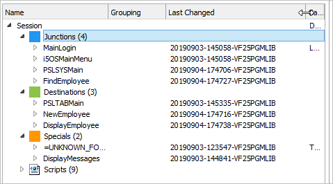 これで、画面の分類を開始できます。 - 追跡情報エリアの MainLogin 画面をクリックします。これはジャンクションとしてあらかじめ定義されています (自動的に分類されています)。