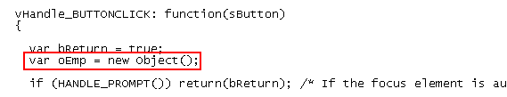 - 以下のステートメントを追加し、oEmp オブジェクトを宣言します。これは、社員番号を渡すために使用されます。