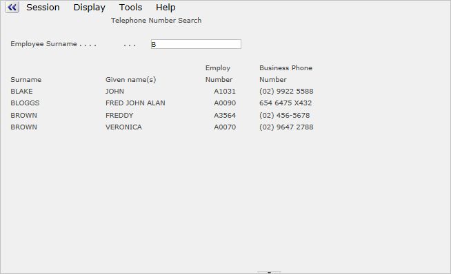 さきほど紹介した 2 つのサンプル画面は異なる署名を持っています。これは、2 番目の画面には、サブファイルにより制御されたレコードとサブファイルのレコードが表示されているからです。つまり、RAMP-TS はこれらの画面を別の画面と考えます。