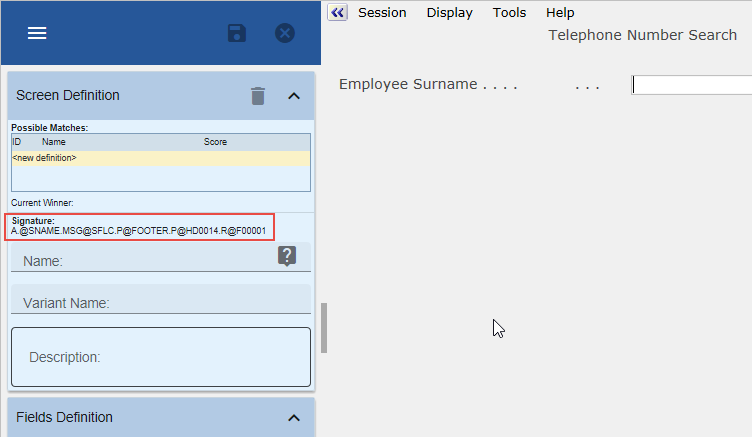 異なる画面署名ごとにバリアント名を適用する場合もあります。この場合、ある画面スクリプトがどの画面を実際に処理しているかが分かるようになります。