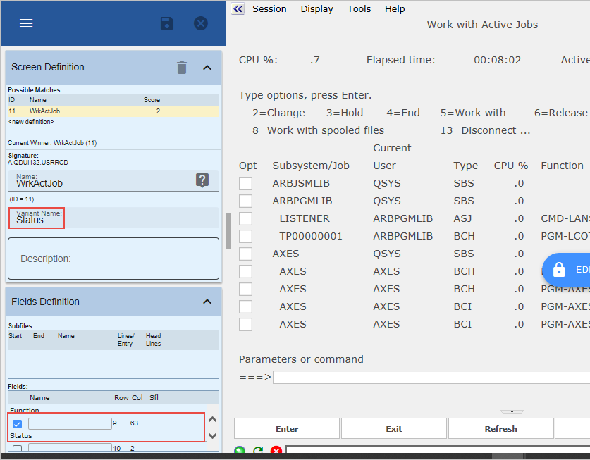 このステップでは、「アクティブなジョブの処理」画面のさまざまなビューをバリアントとして識別し、表示されているビューをスクリプトで処理できるようにします。
