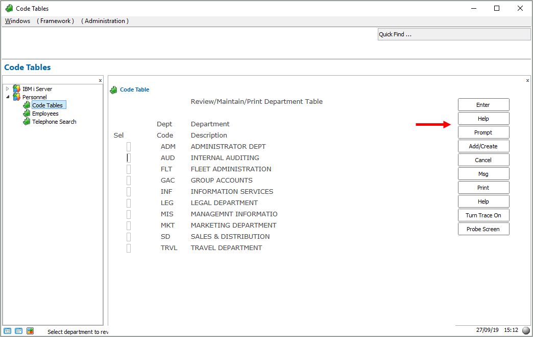 - Review/Maintain/Print Department Table 画面に ReviewMaintPrint と名前を付けます。