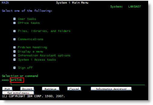 RAMP-TSがこのファイルを認識するためには、これが*PUBLIC *Rユーザー権限のみを持っていることを確認する必要があります。これを確認するには、以下の手順に従ってください。 - IBM i で、WRKLNK コマンドを使用します。