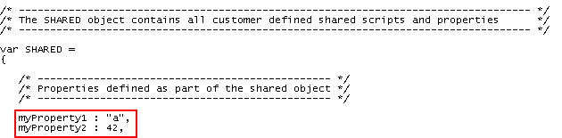 - 共有スクリプト・ファイルで 2 つのテスト・プロパティを見つけて、その内容を確認します。