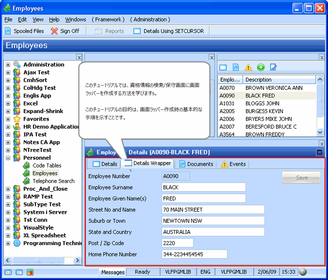 画面ラッパーは、Visual LANSAの再利用可能なパーツで、1つ以上の5250画面に移動して、画面の値を取得および設定できます。ラッパーは、既存の5250アプリケーションを書き直すことなく拡張できる方法を提供します。