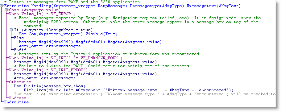 - 最後に、#myscreen_wrapper.RampMessage イベントを処理するルーチンを確認し、RAMP-TS が画面ラッパーの各種のエラーを処理する方法を確認します。
