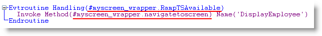 - RAMP が利用可能になったら、ラッパーを移動するデスティネーション画面を #myscreen_wrapper.RampTSAvailable イベント・ルーチンで指定します。