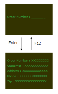 ユーザーは、F12 ファンクション・キーを使用して受注の照会を繰り返します。