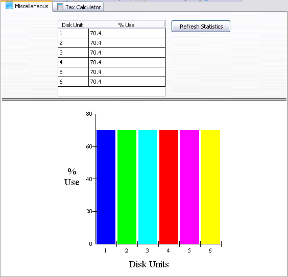 Disk Status画面では、サブファイルの%Use列を読み取り、グラフにそのデータを入力します。