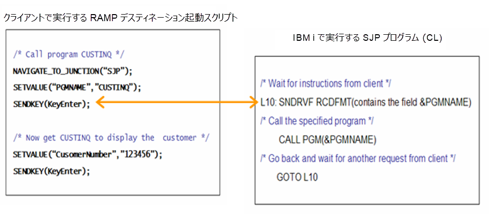 次のシンプルな SJP と RAMP スクリプトは、以下のように連携して動作します。