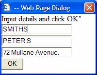次の例は簡単な Web ブラウザー・フォームです。これは、3 つの入力フィールドを引数として受け付け、それを表示し、変更を許可して、変更された値を呼び出し元の RAMP スクリプトに返します。