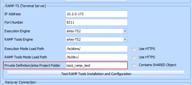 フレームワークの RAMP-TS サーバーを定義するときは、このサブフォルダ名をプライベート作業セットとして指定します。 画面定義は、分割できない完全に独立したプロジェクト・ベースでこのように分割できます。