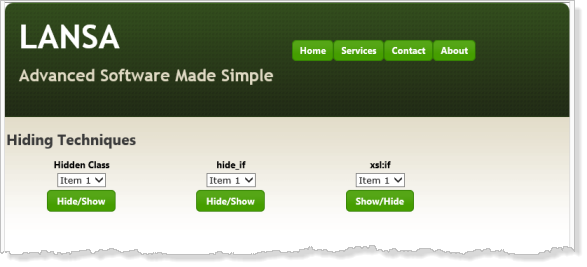 In this exercise, you will learn about a number of ways to conditionally hide objects on a page. The conditions will be based on a field value that you will set in the RDML. Some of the hiding techniques will only be available to certain types of objects, while one of the techniques can be applied to anything on the page. This requires the XSL Source to be manually edited.