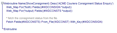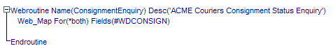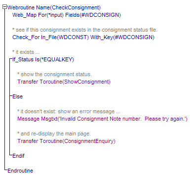 最初の ConsignmentEnquiry Webroutineの基礎となるコードは次のようになります。