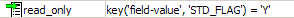 次の例はフィールド#STD_FLAGが 'Y'と等しい場合にウェブレットを読取専用に設定します。この式は以下のような形式で入力してください。