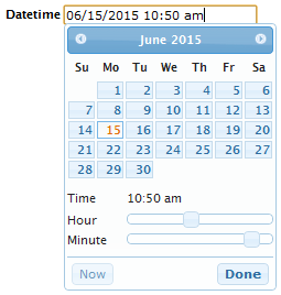 このウェブレットの例を以下に示します。この例では、デフォルト値設定での日時ピッカーを示しています。