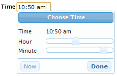 時間ピッカー・ウェブレットはtimeタイプのフィールドと共に使用するのが一番良い方法です。このタイプを使用すると、データは自動的にウェブレットが想定されている形式で受け渡されます。