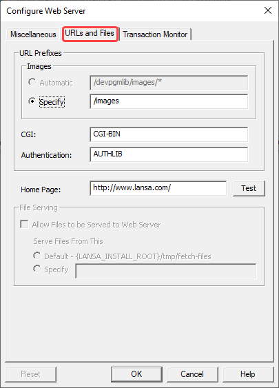 LANSA Webで使用するイメージ・ファイルの場所の別名を入力します。LANSA Webでは、すべてのイメージ・ファイルが1つの場所にあることを前提としています。