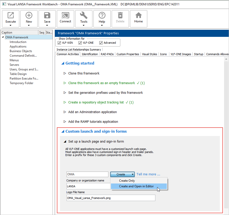 1. Use the Framework Common Activity option Custom launch and sign-in forms.