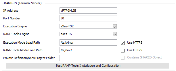 If the Use HTTPS is checked for the Execution Mode Load Path property, https:// is used during the execution of RAMP-TS commands.