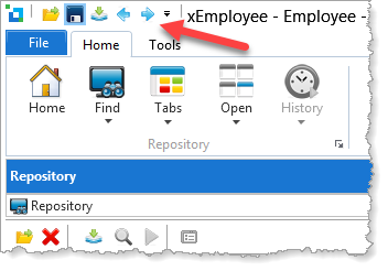 In this step, you will open and view an existing Table, the Employees table xEmployee, from the Repository tab. This means opening a second object (the first is the field iiiAddressLine1 which you used in Step 2 and Step 3. By opening this second object, you will learn how to switch between objects open in the editor.