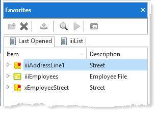 In this step, you will view the Favorites tab. The Favorites tab always contains the Last Opened tab. The Favorites tab can also contain any other tab which you add to Favorites.