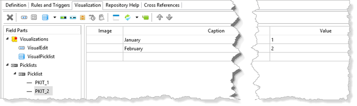 3. Select the Picklist component and define 12 months and values: