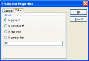 5.  Click OK to save the condition and press F5 to continue running the WAM. The breakpoint will next occur when SECTION has the chosen value.