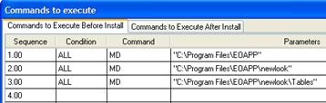 Instruct the package to create newlook directories | Instruct the deployment package to create the newlook directories specified above. To do so, we will execute the MD command (i.e. Make Directory) before the installation occurs. | Click the Command button on the Deployment Tool toolbar. ALL MD "C:\Program Files\Application Name" Note that you must first create any intermediate directories individually because the Deployment Tool will only create a directory when the intermediate directory exists. If you have added other directories in your newlook directory, you need to add a command to create those directories as well. |