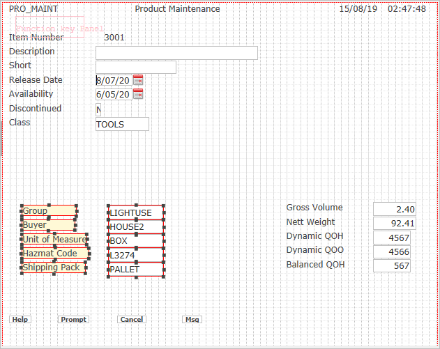 Select the Group, Buyer, Unit of Measure, Hazmat Code and Shipping Pack fields and move them down at the same level as the ones we have just moved.